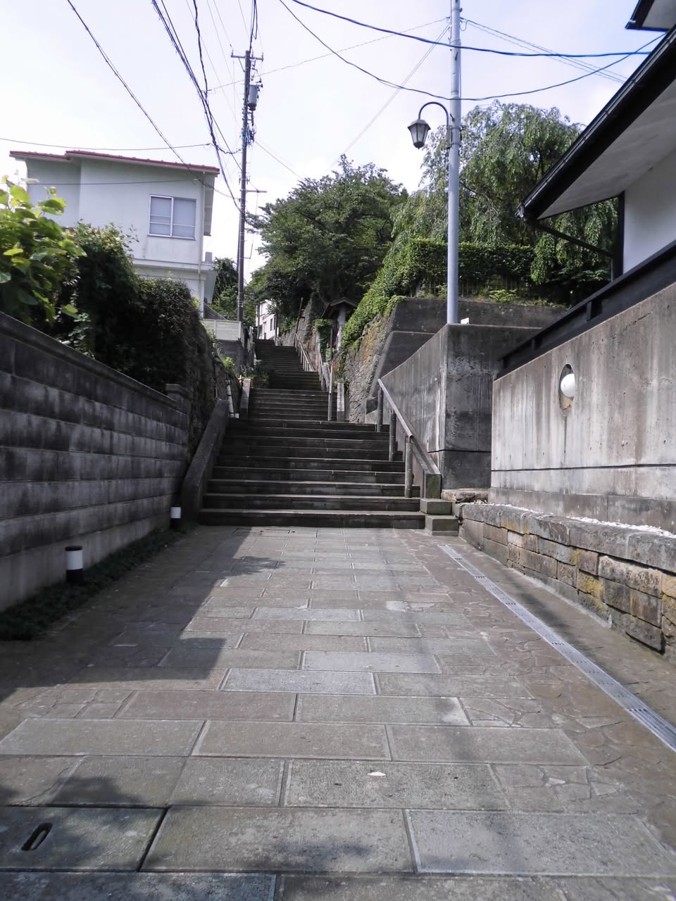 この“鯰坂”は、岡谷駅から天竜川を渡り、諏訪湖手前の岡谷市道106号線を上った場所に位置しています(写真①)