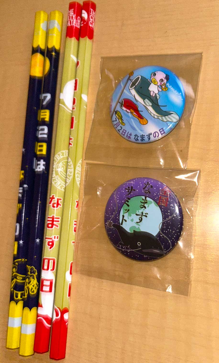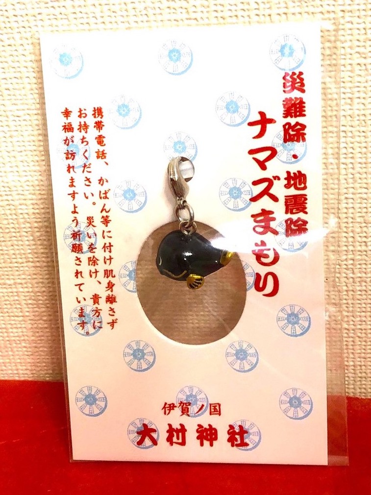これまでに全国で集めた「ナマズ」を「ナマズを描いた絵馬」「お守り」「おみくじ」「ストラップ」