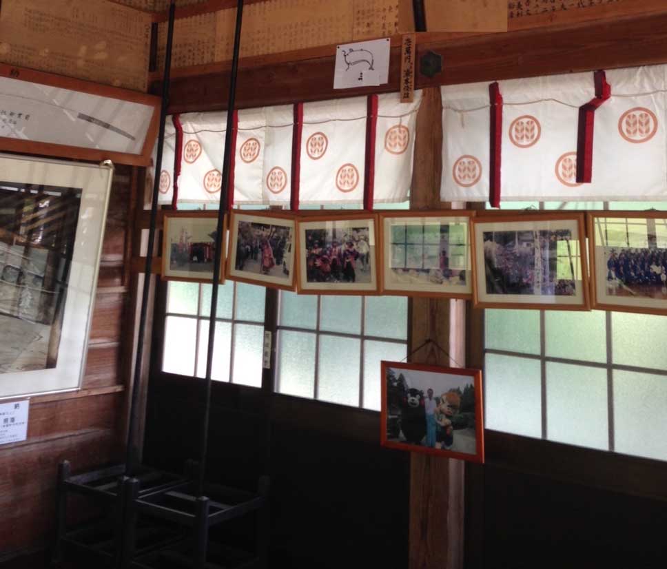 以前(14,5年前)阿蘇神社の壁面には皮膚病祈願の鯰絵馬や木板が奉納されていたそうです。ですが、訪問時には、経年劣化が進んだ木板のみが掛けられていました。